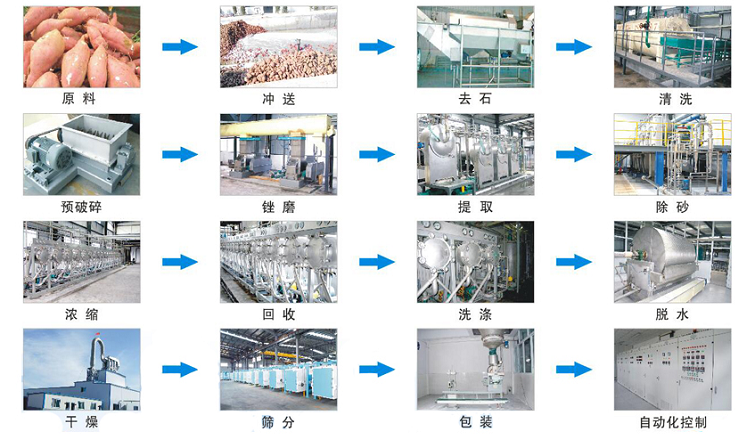 紅薯經稱重后存放于紅薯堆場。紅薯經流送槽并通過一組紅薯泵輸送到去石機,在此石頭和其它重物被分離。河南固博實業有限公司。